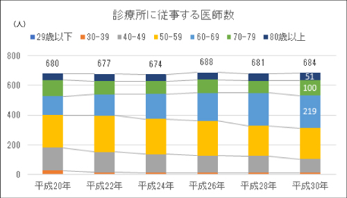(図-1)年齢階層別診療所に従事する医師数(秋田県)