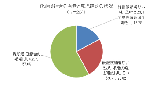 開業医の高齢化が進む一方で、以前は親子承継が一般的でしたが、現在は子どもが親の医院を引き継がないケースが増加しています。本会の調査(2021年2月)では県内の診療所の約6割で後継候補者が不在という深刻な問題となっています(図-3)。